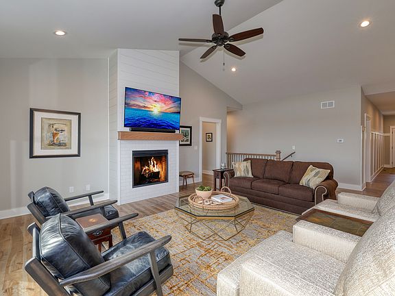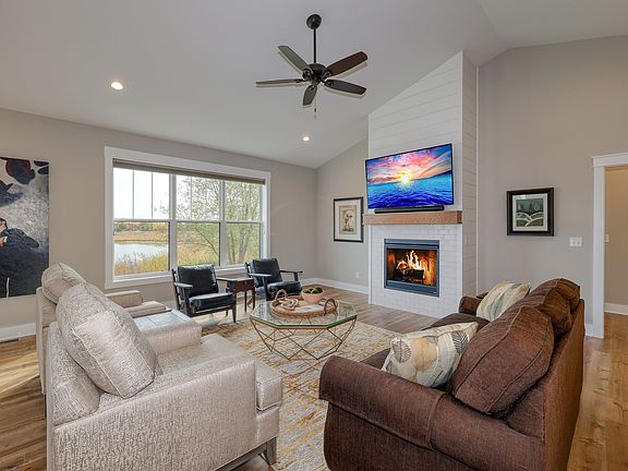 Stunning 2022 ranch home in sought-after Blackberry Creek with beautiful pond views from nearly every room. This thoughtfully designed 3-bedroom, 2-bath home offers an open-concept layout, solid birch hardwood floors, an upgraded trim package, and all Kohler fixtures throughout. The spacious kitchen flows seamlessly into the dining and living areas, creating the perfect space for both entertaining and everyday living. The primary suite features a tray ceiling, recessed lighting, Hunter Douglas motorized blinds, a walk-in closet, and a luxurious en-suite bath with dual sinks, tile floors and a custom tile shower. Additional features include Hunter Douglas blinds throughout, a convenient mudroom with a separate laundry room also on the main floor, and a 3-car garage providing ample storage. The unfinished English basement offers large windows with more pond views and endless potential for future living space. Enjoy peaceful mornings and breathtaking sunsets overlooking the water from your backyard retreat. Located on a quiet cul-de-sac close to parks, schools, the Metra station, and scenic walking trails-this home combines modern comfort, quality craftsmanship, and an unbeatable setting. NO SIGN ON PROPERTY