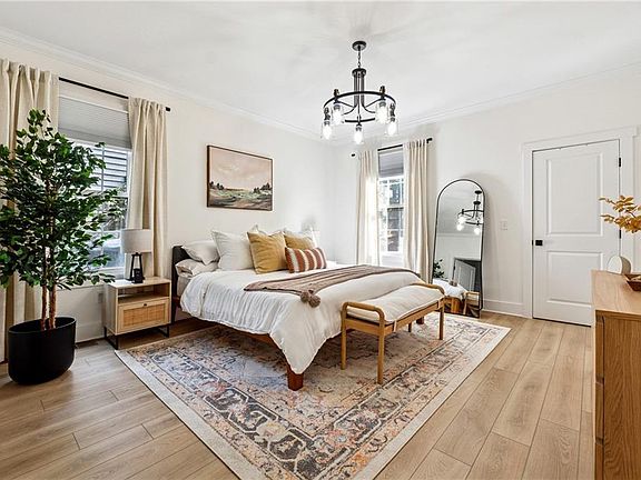 This is a fully furnished 3BR/2.5BA home in the heart of West Midtown, Atlanta. Recently renovated home that blends historic charm with modern design, featuring a contemporary, mid-century modern aesthetic throughout. The main level includes a spacious primary suite with double closets and en-suite bath, plus a stylish half bath for guests. Upstairs, you'll find two bedrooms with a shared bath, along with a versatile flex room which serves as an office and home gym. The updated kitchen is outfitted with premium appliances stainless steel refrigerator, dishwasher, gas range, Breville toaster oven, Ninja appliances, coffee maker, and more making it ideal for cooking and entertaining. Outside, enjoy a driveway for two cars (plus street parking), a furnished patio with TV, pellet grill/smoker, and a Solo Stove fire pit. Stylish, comfortable, and move-in ready. Situated in the desirable Howell Station neighborhood, this home offers walkable access to Knight Park and Westside Park, Atlanta's largest green space. There is direct Beltline access 500 feet from the home. Walking distance to West Side Paper and West Midtown restaurants, shops and more.