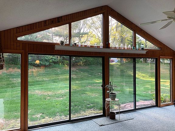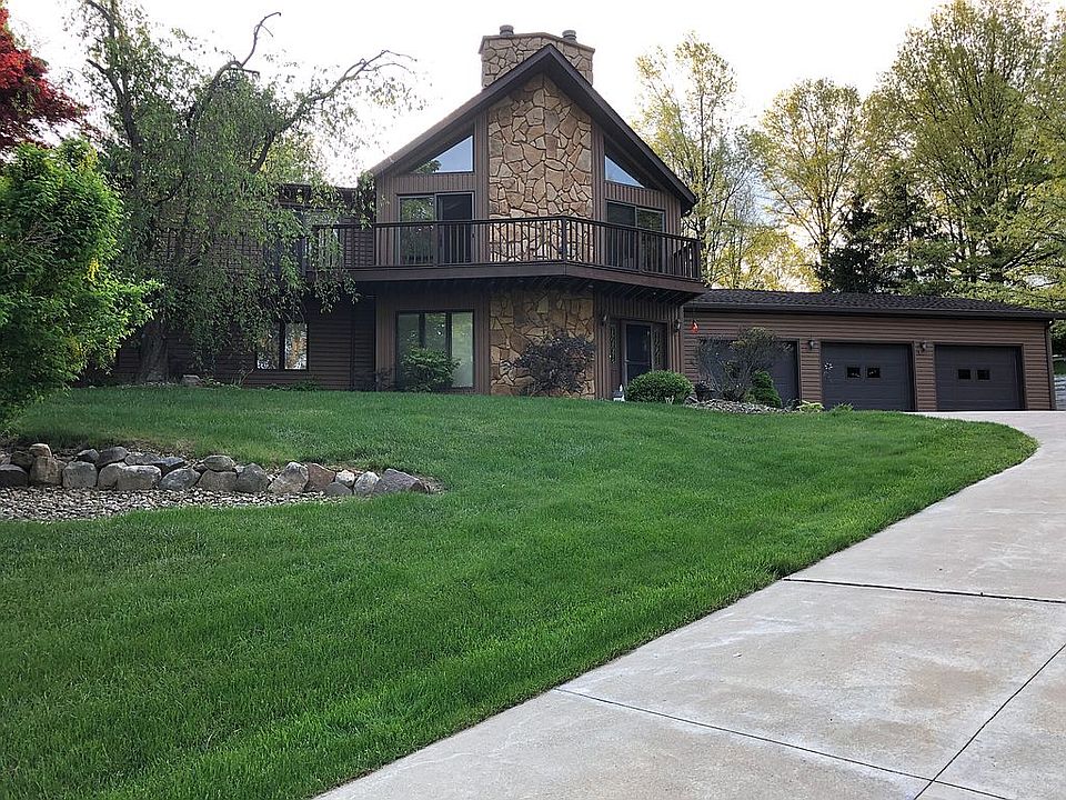 Custom built with lots of perks! 17 Ft cathedral ceiling in great room with woodburning fireplace, wall of windows leads out to deck! Custom built kitchen with a center island, leads to a dining area and out to heated sun room. Huge family room with a wet bar and fireplace, greet you on the first level, which is also home to two bedrooms, laundry room and utility room. 3 stall garage and newer concrete driveway. Roof is almost new! Close to Walnut Creek lake access for sunset walks!