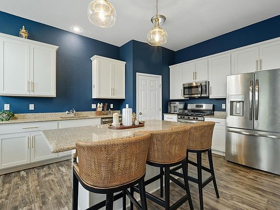 Exterior surround soundImpressive rock wallCeiling fansCabinet hardwareFlower gardenUpgraded lighting