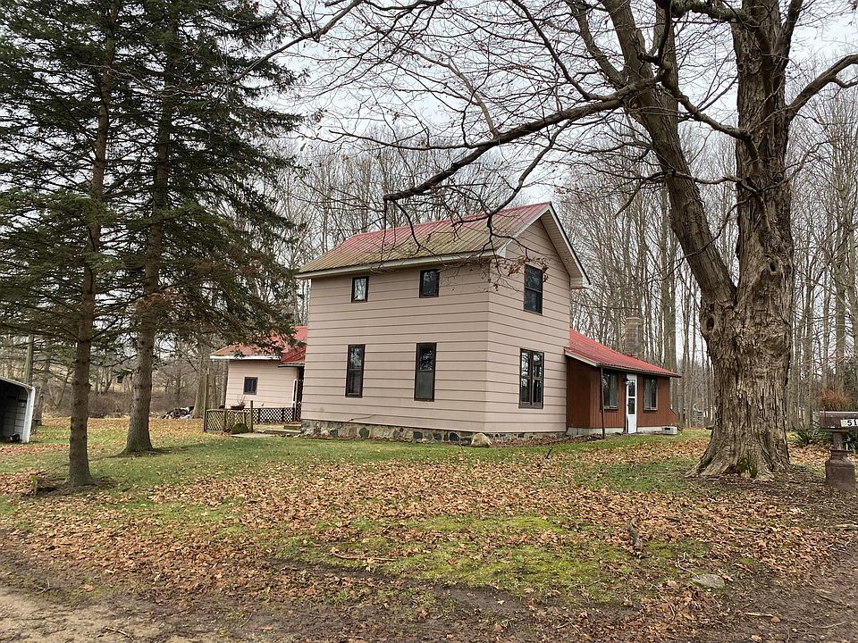 Peaceful and quiet country setting with spacious farmhouse, surrounded by trees, outbuildings and garden spot. This 3 bedroom 1 bathroom farmhouse offers tranquil country living at its best on 1.5 acre m/l. This home is move in ready but just needs some updating. The house is heated by a good working oil furnace and has 2 woodburners for backup and / or supplemental heat. Outside there is a circle drive with a 2 space carport, and several outbuildings as well as fruit trees and a large garden plot. This is the perfect starter home or a handyman special with loads of potential all in a private and beautiful country setting located between Coldwater and Union City. This home and barns on a cozy acre and a half is priced right.