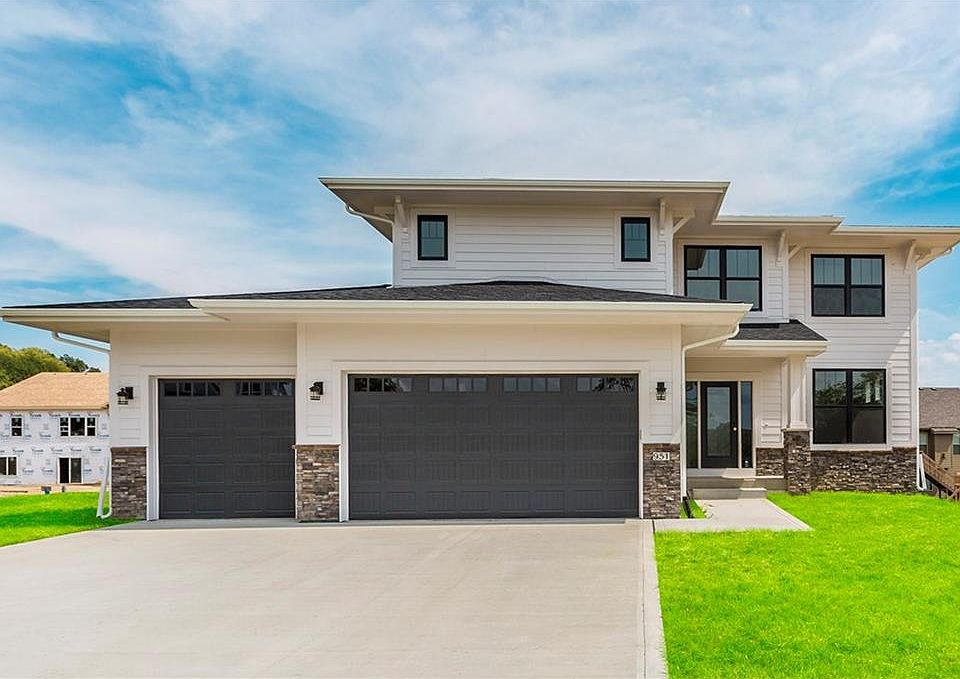 Orton Homes presents this modern elevation of the Dublin II plan! Nearly 2,200 sq ft of finish, 4 bedrooms, office on the main, large kitchen with tons of cabinets, tons of windows on the rear, covered deck, walkout unfinished basement (builder can finish), tiled master shower, hardi siding, and Pella black windows!