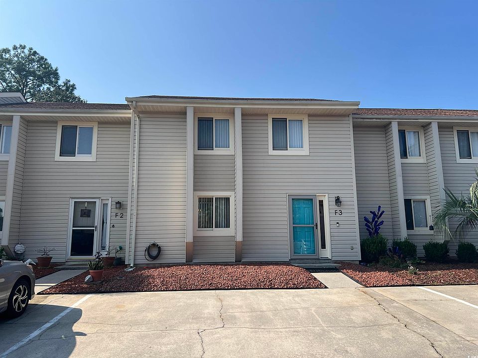 Start living your BEACH LIFE today! Great location in Baytree II moments from the wide beaches of North Myrtle Beach, waterfront dining in Little River, award winning golf courses, several area marinas/boat launches, and great medical care at McLeod Health - Seacoast. Townhouse F3 features three bedrooms, 2 full baths, a half bath, spacious kitchen with ample counter & cabinet space, a pantry & breakfast nook, laminate flooring in living area, tile in kitchen, foyer, & baths, with newer carpet in all bedrooms. Enjoy morning coffee or a relaxing evening beverage on your private rear patio that overlooks a green space. Attached exterior storage makes a great spot for all your beach gear or a bicycle. This is a great opportunity to purchase a primary, second home, or a long-term rental unit with a community pool. Call today to see this townhouse that includes appliances and a washer & dryer.
