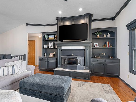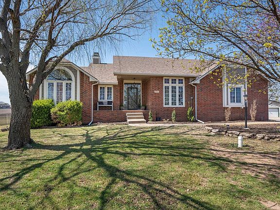 Experience the epitome of country living on this sprawling 5-acre ranch situated at 951 S. 199th. This exceptional property boasts 4 bedrooms, 3 bathrooms, and a detached outbuilding, featuring a spacious workshop and shop and sizable recreational man-cave. Step inside to discover a seamless open floor plan adorned with hardwood flooring, crown molding, and abundant windows that flood the space with natural light. The luminous kitchen is a chef's delight, equipped with quartz countertops, stainless steel appliances, pull-out shelving, cushion-closed drawers/cabinets, and both under and overhead cabinet lighting. With formal and informal dining areas, entertaining friends and family is effortless. The main level primary bedroom offers tranquil views of the acreage and offers direct access to the covered deck. The primary in-suite bathroom features double sinks, a walk-in tile shower, water closet, and a spacious walk-in closet. Descend to the walk-out basement, where you'll discover an additional bedroom, a full bathroom, and a generous family room complete with a wet bar, ideal for leisure and relaxation. The basement bonus room presents versatile options, whether as an exercise space or a hobby/craft room. Outside, unwind on the covered deck overlooking the expansive backyard with wrought iron fencing, providing ample space for outdoor enjoyment. Additional features include an 8x8 concrete storm room, water softener, water purifier, a recently replaced water heater (September 2023). Just minutes from the highly sought Goddard Schools and easy access to 400 Highway you get the best of country living with an easy commute to Wichita. Don't miss out on this exceptional opportunity.