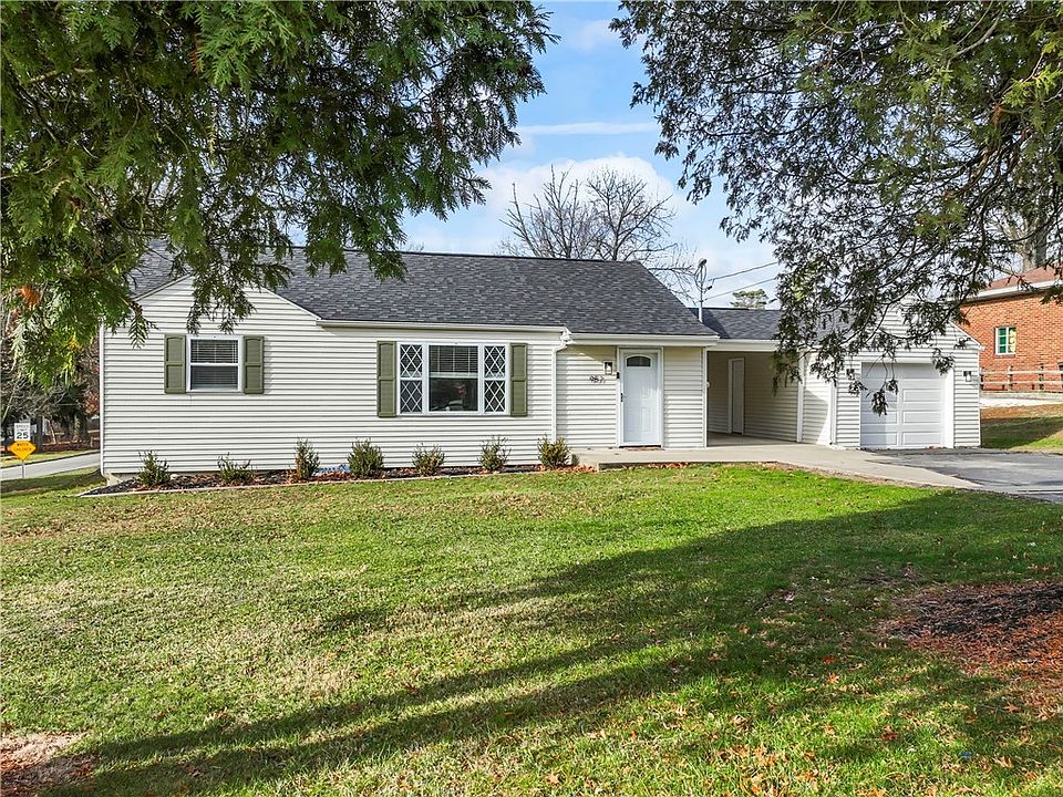Inside and out, this pristine 3 bed, ranch on .5 acre corner lot with 2 driveways has it all!Everything in this lovely home is almost new, you have to see it to believe it. The livingroom/dining area/kitchen give the feel of open concept but still show the definition of rooms.The kitchen has ample counter space for all of your gadgets as well as a suite of stainless steel appliances just wating for your culinary creations.The neutral color palete is great for all your design and decorating ideas.The primary bedroom is awash in natural light w/plenty of room. The main floor bath has a beautifully tiled bath/shower area you will want to see. Downstairs, a spacious family room for entertaining and a wonderful finished bonus room await, perfect for guests. . The full bath w/ walk in shower is on the lower level. You can walk out to the huge yard with mature trees. The breezeway that connects the house and garage is a wrap around patio complete with a ceiling fan for all your outdoor fun.