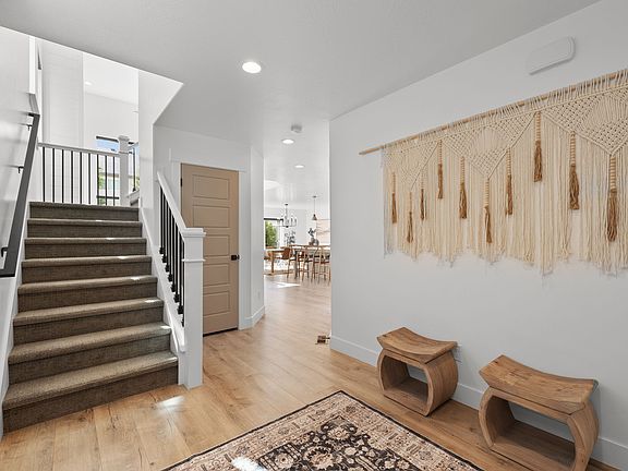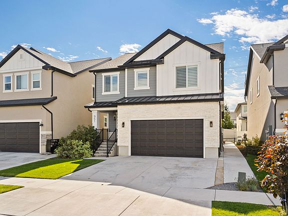 This is not your standard Bluffdale two-story. Built in 2019, this home feels brand new in all the right ways. From the flooring to the fixtures, every inch of this home has been renewed with intention by Canyon Craft. Their signature craftsmanship carries through every space. Step through the front door into a spacious entryway that immediately sets the tone for the rest of the home. The layout flows naturally into a bright open-concept kitchen and living space that feels warm and inviting. The kitchen has been completely refreshed with modern backsplash, upgraded fixtures and designer curated paint. It features quartz countertops, a large overhang island, gas range and stainless steel appliances. The LVP flooring continues through the main floor into the living room where a gas log fireplace with a shiplap and stone surround creates a perfect focal point. Oversized windows bring in soft natural light, complemented by maintenance free, hardwired roller shades (no recharging battery packs, yay!). The entire main floor is designed for everyday living with a sense of comfort, style and privacy. Upstairs, the oversized primary suite feels like a retreat. The ensuite bathroom features dual sinks, a large walk-in closet, and an elegant partial euro-glass shower. Two additional bedrooms, a full bathroom, and a large laundry room complete the upper level, giving plenty of space and function. The second story feature custom shutter window coverings in all the windows. The fully finished basement adds even more versatility. A large second living room makes a great theater or playroom. The fourth bedroom, complete with French doors, works perfectly as a home office or guest space. A third full bathroom ties the basement together and makes it ideal for long-term guests or a growing household. Outside, the backyard is private and peaceful. Mature trees line the property, creating a natural sense of separation. The patio with fire pit adds an inviting outdoor living space that works in every season. The two-car garage is spotless, finished with epoxy flooring and space for two vehicles and extra storage. This home blends modern luxury with thoughtful detail in a way that feels effortless. From the craftsmanship to the finishes, every inch has been cared for. It's the kind of home that feels custom the moment you walk through the door. Staging has been done by Stage 7 Design and all the furniture is available for sale. Square footage figures are provided as a courtesy estimate only and were obtained from County Records. Buyer is advised to obtain an independent measurement.