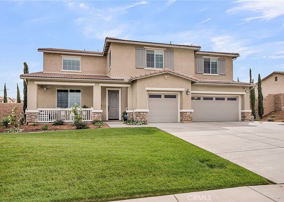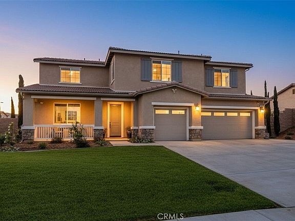 Nestled in the highly sought-after Orangecrest neighborhood, this exceptional residence seamlessly blends timeless elegance with modern sophistication. Every detail has been meticulously curated to create a serene sanctuary of style and comfort. A charming front porch welcomes you with grace, offering the perfect spot to unwind as the sun sets in a cascade of golden hues. Step inside to discover gorgeous hardwood flooring, impressive high ceilings, and exquisite crown molding and baseboards that set the tone for refined living. The heart of the home is an expansive open-concept kitchen and living area, ideal for contemporary lifestyles. The chef’s kitchen boasts striking quartz countertops, premium KitchenAid appliances, abundant upgraded cabinetry, a farmhouse sink, walk-in pantry, and a generous center island illuminated by pendant lighting. The adjoining dining and living spaces are bathed in natural light, creating a relaxed yet sophisticated ambiance. The formal dining room and adjacent butler’s pantry elevate your entertaining experience. A first-floor en-suite bedroom offers versatility for guests or multi-generational living. Upstairs, a cozy loft with a built-in desk provides a peaceful retreat, while three spacious secondary bedrooms—one with its own en-suite bath—ensure comfort and privacy. The palatial primary suite is a true haven, featuring a spa-inspired bathroom with a standalone soaking tub, luxurious shower, dual vanities, marble flooring, and a custom walk-in closet with built-in organizers. The sweeping, pool-sized backyard presents endless possibilities for leisure. An extended California room offers seamless indoor-outdoor living, ideal for al fresco dining or unwinding amidst mature landscaping that includes a lush lawn, stately cypress trees, and a variety of fruit and olive trees. Additional highlights include custom window treatments, designer lighting, an upstairs laundry room with sink and cabinetry, a security system, block and vinyl fencing, and a spacious three-car garage. Throughout the home, premium finishes and thoughtful design choices create a harmonious layout ideal for both everyday living and stylish entertaining.