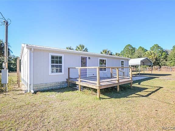 This home is a must see, and doesn’t disappoint. With a new roof, all new well equipment(including a new well pump), all new appliances, new carport, new shed, new siding, new deck, completely remodeled kitchen and bathrooms, luxury vinyl tile throughout, bead board and ship lap ceilings and walls, custom closet built ins and more. This home was completely renovated by the highly skilled homeowners as their forever home. For the ultimate in convenience, there’s a pantry and indoor laundry. The cherry on top is the quiet 1.25 acre lot located at the end of a private road. The home is located close (3.7 miles) to Lake Rousseau Dam and Recreation Area for some great freshwater fishing, the amazing Rainbow Springs in Dunnellon and Three Sisters Springs in Crystal River are a short drive away. Shopping and all the area has to offer are available in both Dunnellon and Crystal River, and Ocala is less than 45 minutes away.