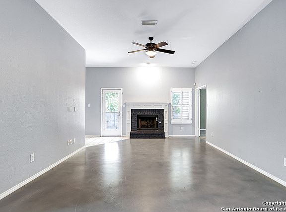 Discover this stunning single-story gem that perfectly blends comfort and style. With high ceilings and minimal carpet, the home feels spacious and inviting from the moment you step inside. The living room's eye-catching fireplace is the perfect spot to unwind, while the multiple dining areas offer plenty of options for meals and entertaining. The kitchen is a chef's dream, boasting ample cabinet and counter space, with a refrigerator, washer, dryer, and water softener all included for your convenience. The primary suite is a true retreat, featuring a luxurious double vanity, a walk-in shower, a garden tub, and a custom walk-in closet that offers ample storage space. Outside, enjoy the beautifully landscaped backyard, complete with a covered deck, mature trees that provide plenty of shade, and your very own hot tub for ultimate relaxation. Located with easy access to the Medical Center, UTSA, the 151 Business Corridor, and more, this home offers everything you need in a rental.