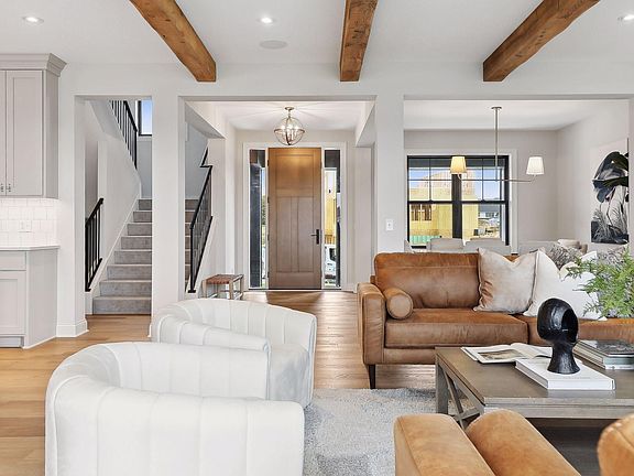 Located on some of the most beautiful land in Chanhassen, this serene neighborhood features executive wooded homesites, with an abundance of parks and trails within the community. Stonegate Builders proudly presents the Harriet. This home has 5 bedrooms, 5 bathrooms and an open floor plan ideal for entertaining. The entrance leads to an open dining area that extends into the great room and kitchen. The gourmet kitchen offers an oversized island, enameled custom cabinetry, quartz countertops, a separate prep area and a pocket office. The great room, with beamed ceilings, features a beautiful fireplace. Also featuring large windows, dinette, sunroom, grill deck with stairs, mudroom and a powder room. The upper level includes the primary suite , luxury bath with soaking tub, tiled shower and walk-in closet. Also included are two additional bedrooms, full bath, bedroom #4 with a private ensuite bath, and laundry room. The lower level includes bedroom #5 and bath, a spacious recreation room with fireplace and built-ins, walk-up wet bar, and a flex room.