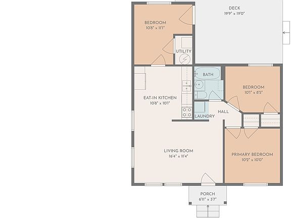 Deck and fenced backyardVersatile third bedroomQuiet neighborhoodEat-in kitchenLaminate flooring