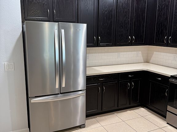 Quartz countertopsOpen floor planFenced in backyardModern color of icicleSlider glass doorStainless steel kitchen appliancesLarge kitchen island
