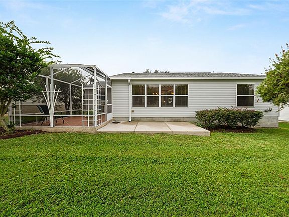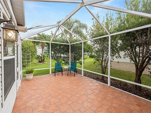 NO BOND! Roof & Water Heater 2021! This charming furnished 2-bedroom, 2-bath Austin model is nestled in the desirable Village of Woodbury, just minutes from Mulberry Grove Recreation Center, Mulberry Plaza, and multiple executive golf courses. A beautifully painted driveway and walkway lead to the welcoming front entrance with a leaded glass door, setting the tone for a thoughtfully maintained home. Inside, the split floor plan features ceramic tile throughout for easy care and a cohesive look. The light and bright kitchen offers ample cabinetry, granite countertops, a gas stove, and newer appliances are ideal for the home chef. Adjacent, the Florida room adds versatile living space perfect for a hobby room, office, or den. Step outside to a spacious birdcage lanai that is perfect for relaxing, grilling, and enjoying Florida sunsets. The primary suite features a walk-in closet and private bath with shower. Guests will appreciate the upgraded walk-in shower with glass doors in the guest bathroom. This home also includes natural gas, mature landscaping, and is just a short golf cart ride from shopping, dining, medical facilities, and entertainment. Start living the lifestyle The Villages is known for comfort, convenience, and community in a beautifully maintained home!