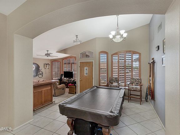 Beautiful home on over a quarter acre cul-de-sac lot in a quiet neighborhood just off Loop 101, close to Westgate sports centers, restaurants, and shopping. Open floorplan, vaulted ceilings, large secondary bedrooms and den that could be a fourth bedroom, 2 separate living spaces with wood plantation shutters throughout. Huge master suite with patio access to the biggest backyard in the community. The pie-shaped lot creates a space that is equivalent to 3 backyards. A pebble-tec pool occupies the far left. Empty space directly behind the house and a massive yard to the right could easily accommodate a guest house, workshop, sport court, or all of the above.