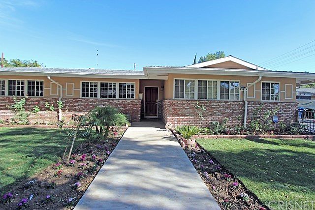 True gem in in quiet cul-de-sac in peaceful part of Chatsworth. The home is gated, has brick and stucco facade, and landscaping is well done. Property features a main house with 4 bedrooms and 2 bathrooms, including a jack and jill. Property is in great shape with granite counter tops, tile and laminate flooring, and dual pane windows. The lot is large with a recently re-finished pool. The lot also has a detached garage with a permitted recreational room on the 2nd level with a full bath. This can be used as a spacious home office, guest house, or pool house!!! Very functional layout.