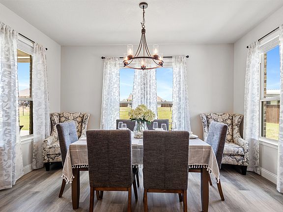 Step into this beautifully appointed single-family home on a generous 0.428-acre lot in one of Godley’s most inviting communities. This 3-bedroom, 2-bathroom property offers a functional layout enhanced by custom details and quality finishes throughout. Enjoy luxury vinyl plank flooring, marble tile in the bathrooms, and a striking floor-to-ceiling brick fireplace in the main living area, which also features vaulted ceilings that create an airy, spacious atmosphere. Natural light floods the home, highlighting a designer chandelier and arched entryways with elegant brick accents. At the front of the home, a flexible bonus room overlooks the community pond and park perfect for a home office or second living area. The spacious kitchen and living room open to an extended back patio, with a paved walkway leading directly to the driveway for added convenience. Just off the laundry room, you’ll find an additional storage room complete with built-in shelves and hanging rods, offering practical space for organization. Community amenities, including a pool, park, and pond, are all just steps from the front door. This home offers everyday comfort and timeless appeal. Schedule your private showing today!