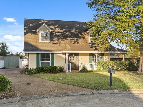 Beautiful three bedroom, two and a half bathroom River Ridge home on the most serene cul-de-sac with beautiful, mature Live Oaks and great access to Jefferson Highway. Off-street parking, cathedral ceilings in the den, and a large outdoor courtyard are a few notable features of this fabulous home. The primary bedroom is conveniently located on the first floor with an ensuite bathroom that was updated recently and a large walk-in closet. The two guest bedrooms are upstairs and share a bathroom. A large shed off of the driveway offers ample storage for your outdoor equipment. There are two living spaces: a large open living room in the front of house and the family room or den off of the kitchen. The roof is four years old. X flood zone. Some photos have been virtually staged.