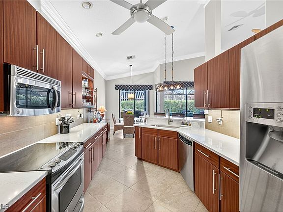 Luxury Pool Home in The Landings – Move-In Ready & Fully Updated. Experience resort-style living in this elegantly updated 3-bedroom, 2-bath home which offers a seamless blend of luxury and comfort with tile flooring, custom kitchen with quartz countertops, stainless steel appliances, tile backsplash, and designer lighting. Open and spacious living area. Primary bedroom offers two walk-in closets and a beautifully updated primary bathroom that includes a large walk-in shower and dual vanities. Guest bathroom also has been remodeled with fabulous updates. Step outside to your private pool oasis with a newly resurfaced pool, solar cover, new pool heater, hot tub, outdoor electric fireplace, and dry bar with wine fridge and TV, perfect for entertaining or unwinding in privacy. Recent upgrades include a 2020 roof, new HVAC, tankless water heater, electric hurricane shutters, brick paver lanai and driveway, and epoxy-finished garage floor. Enjoy the best of The Landings lifestyle, golf, tennis, pickleball, marina, fitness center, and on-site dining on the Caloosahatchee Intracoastal waterway. A amenity rich community and the perfect move-in-ready retreat for those who value style, quality, and easy Florida living.
