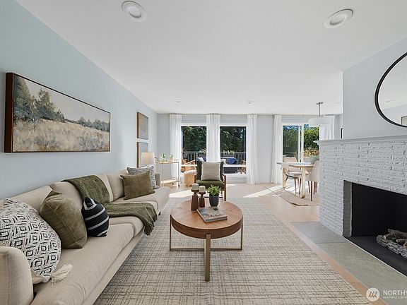 Simply say hello & turn the key in the heart of Matthews Beach. Reimagined down to the studs in 2022, this timeless home showcases white oak plank flooring, an epicurean kitchen, AC, & a luxe primary suite - your private retreat. Anchored by a focal wood-burning fireplace, the main level flows seamlessly through open living, dining, & kitchen spaces to a large deck overlooking a vast landscaping canvas. Expansive front and back grounds create a private oasis. The fully finished lower level offers a den/office, 2 bedrooms, ¾ bath, fireplace, & patio with breezy outdoor access. A vibrant community, one-car garage + EV parking pad complete the ideal package - conveniently mins from Burke-Gilman Trail, parks, shops, & prime Seattle amenities.