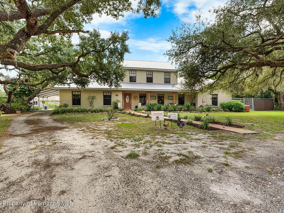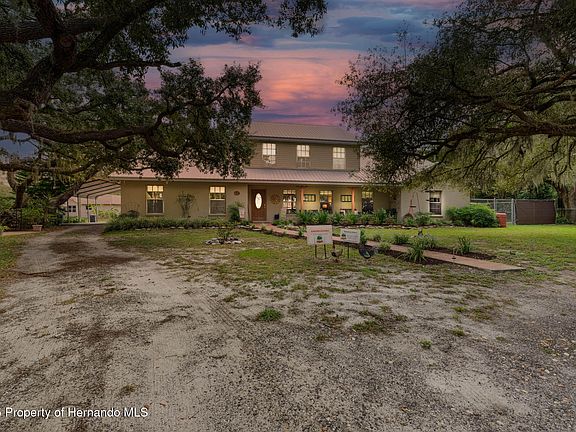 Truly One-of-a-Kind Home and Business Opportunity! Discover endless possibilities with this unique 4-bedroom, 3-bath home on 2.67 acres, complete with 5-car garages, two addresses, and a long-established pet-sitting business (20+ years). The property can potentially be split, offering flexibility for expansion, investment, or continued business use. Enjoy country living with city conveniences on this fully fenced corner lot featuring an electronic gate entrance and two additional gated entries. Beautifully landscaped with mature trees, cleared areas, and space for all your toys. Relax by the screened-in pool and spa, or unwind under the backyard gazebo. Inside, you'll find generously sized bedrooms, a large inside laundry/utility room with abundant storage, and a storm-reinforced storage closet. The spacious in-law apartment offers its own full kitchen with island, open living and dining area, full bath, large bedroom, and a porch overlooking the pool and yard — perfect for guests, extended family, or rental income. Additional features include two carports, multiple storage areas, a chicken coop, and plenty of parking. Sit and relax on the welcoming front porch, take in the peaceful setting, and envision all the potential this property offers. Zoned AR, with possibility for conversion to commercial use — offering excellent Little Road frontage and convenient access to the Suncoast Parkway and US 19 for an easy commute throughout the Tampa Bay area. Endless opportunities — live, work, and thrive on this incredible property! Don't miss out on this rare opportunity .