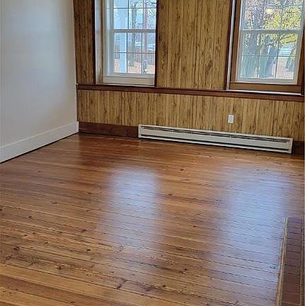 This is not a pet friendly property. This remodeled twin is waiting for you to see the character of the old home and the newer upgrades for the best of both worlds. Plenty of off street parking in the parking lot greets you as you pull into the property. Follow the sign to the A side of this side by side duplex to find a large porch to enjoy nature and the outside yard. From the porch you enter through the door into the large eat in kitchen. The kitchen has some updates but there are still touches of the past specifically kept for character and charm of the original home. Off of the kitchen is the very spacious Living Room. This room could also be a dining room it is so large, so you can have both! All fireplaces in the home are now decorative only, but great to admire. Head upstairs to the second floor where you will see the amazing wide wood plank flooring that is original. There are two bedrooms on this level. This home has beautiful natural light and the Primary bedroom has a private balcony to enjoy and brand new carpeting. You might think the home is complete, but there is a bonus room on the 3rd floor that could be an office, playroom, or storage area. Home has a brand new septic system and is ready for you to move in. Landlord is looking for all applicants over 18 to have a credit score of 600 or more and to have no criminal background, NO PETS! This is a month to month lease.