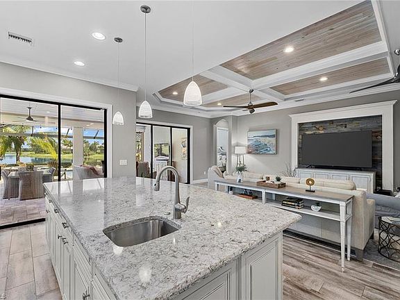 Gorgeous Updated Home in Fiddler's Creek with Social Membership. Lovely KING Beds and new decor in each of the 3 bedrooms all with smart tv's and 3 full baths. Enjoy a WATER VIEW with large lanai, private pool and spa. This open floor plan has extra large island and will have bar seating, the room flows into a comfy living space with lots of reclining and large television. Fresh COASTAL feel throughout this home and formal and casual dining areas. The Den has a New cabinet style Murphy Bed and unique desk and cabinets. You will love all the attention to detail and design. The garage is 2 car plus and will have all you need for the beach. Bikes are not for tenant use. Enjoy the special Social Club membership with Club dining and pool side service, fitness, tennis, and more. Naples at it's finest with a short drive to the Marco or Naples beaches, dining, and shopping. COME relax ... in this topnotch home.