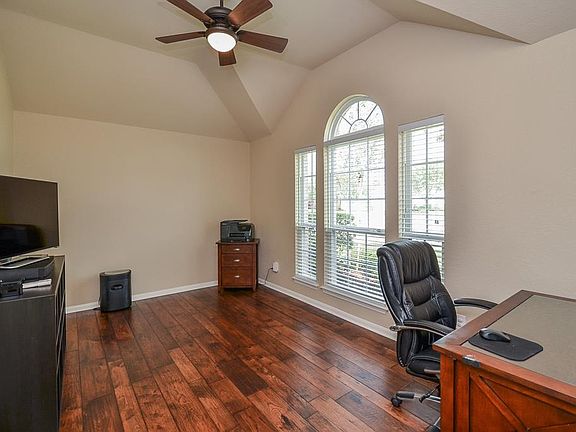 This spacious single story sits on a quiet cul-de-sac and comes loaded with upgrades! The foyer flanks a private study enclosed by French doors and a dining room fit for any family gathering, both of which have hardwood floors. The wood floors stretch into the family room where you ll see a fireplace with stone surround. The island kitchen has upgraded appliances, granite counters, and cabinet hardware. A real master s retreat with ample space boasts a five piece bath. Don t miss this one!