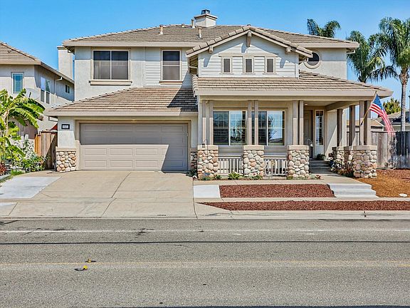 Modern 5 bdrm 2.5 bath home in fantastic location on LARGE LOT. Dark blue POOL with stamped and covered patio entertaining area and a low maintenance yard. Interior advantage of separate living room and family rooms including easy gas fireplace. The NEW CHEF'S KITCHEN includes premium stainless appliances and space saving cabinets like magic drawers and corner carousels. Dining room adds a butler's pantry. Updated; carpet, interior paint, lighting fixtures, flooring planks, water softener and filtration. Garage includes EV charger, insulated door and opener, and huge water heater. NO HOA or Mello Roos Fees. Room for ADU or RV and boat. Easy access to parks and freeway.