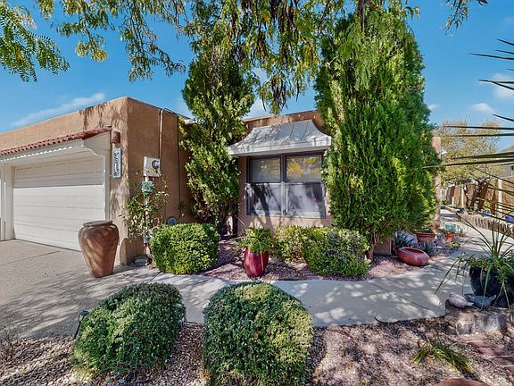 Beautifully maintained home in the desirable gated Tanoan community! This light-filled 3-bed, 2-bath home features vaulted ceilings and an abundance of skylights that fill the open floor plan with natural light. The spacious primary suite offers a relaxing retreat with a huge walk-in closet and private access to the backyard. Enjoy stunning mountain views and tranquil mornings from your low-maintenance backyard that backs up to the golf course--a perfect blend of serenity and scenery. Additional highlights include a newer TPO roof (2022), neutral finishes throughout, and generous living and dining areas ideal for entertaining. Conveniently located near top-rated schools, shopping, and dining. This Tanoan gem combines comfort, elegance, and location--don't miss it!