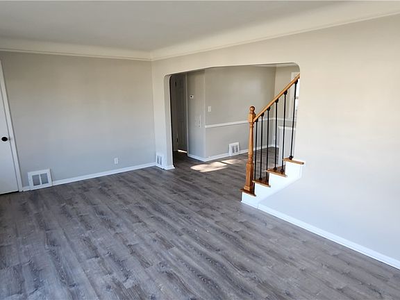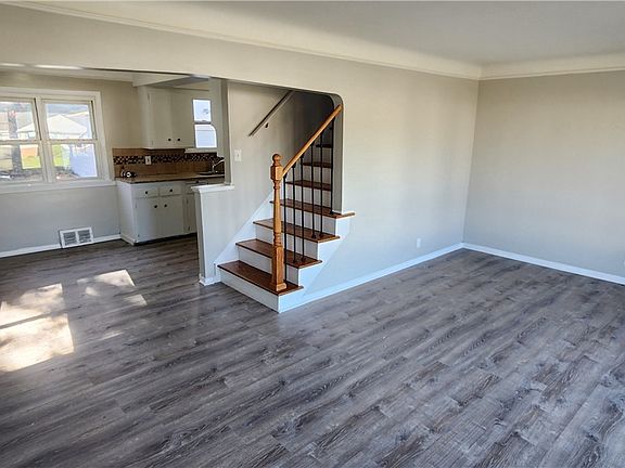 This beautifully renovated 3-bedroom, 1-bath home features central air conditioning and modern upgrades throughout. The eat-in kitchen includes brand-new granite countertops, a decorative tile backsplash, ceramic tile flooring, and a new dishwasher. The main level offers a bright living room with a large picture window, a fully updated bathroom, and two bedrooms. The spacious third bedroom occupies the entire second floor. The partially finished basement provides a large recreation room for extra living space.