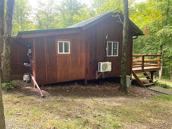 This secluded cabin on 3 acres borders Gas Springs State Forest in Canaseraga NY, Allegany County.