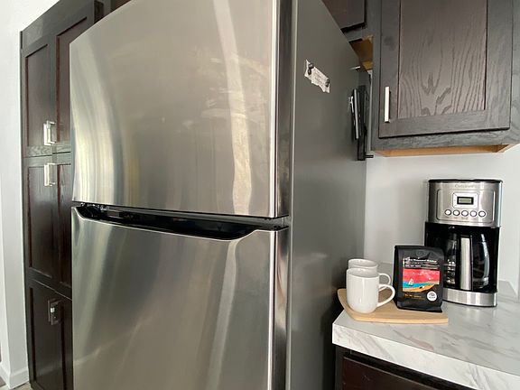 --Kitchen includes fridge/freezer, sink, stove, oven, dishwasher, microwave, toaster, blender, and --Cuisinart drip coffeemaker.