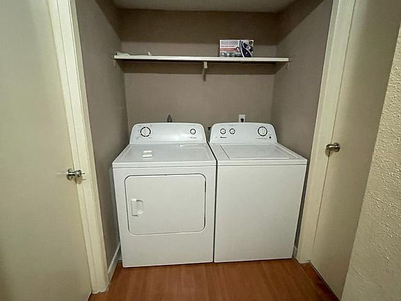 Washer and dryerDining setIkea beds with mattressesTile and laminate flooring