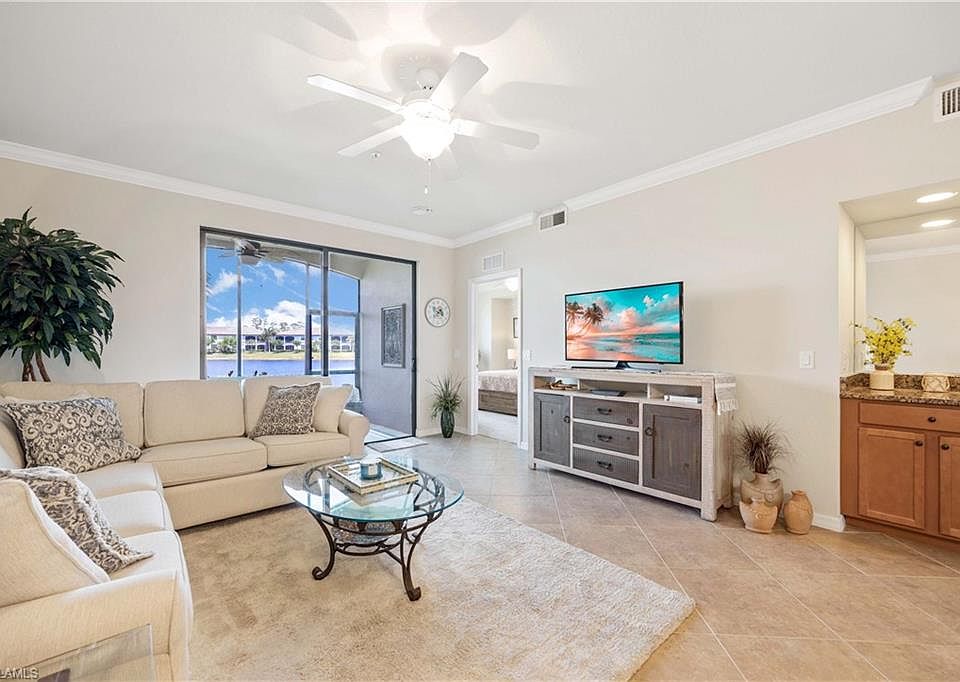 Welcome to this beautifully appointed Bromelia model located in the Avellino subdivision of the sought-after community of Treviso Bay. Offering 2 bedrooms, 2 full bathrooms, and a versatile office/den/3rd bedroom, this residence is being sold turnkey furnished, making it truly move-in ready. The floor plan is designed for both comfort and style, featuring a spacious living and dining area that flows seamlessly to the screened lanai overlooking a tranquil lake. The kitchen boasts modern cabinetry, granite countertops, stainless steel appliances, and a breakfast bar for casual dining. The owner’s suite offers private lake views, walk-in closets, and an en-suite bath with dual vanities and a walk-in shower. The guest bedroom and bath provide ideal accommodations for visitors, while the office/den creates flexibility for work or relaxation. A detached garage provides extra convenience and storage, while the home’s turnkey status allows you to start enjoying the resort-style lifestyle of Treviso Bay immediately. 2 screened-in, well appointed lanais provides a perfect place to enjoy morning coffee or afternoon cocktails. Convenient 1st floor unit provides easy access for bringing in groceries and/or taking pets outside. The Veranda III condo association recently began requiring that all condos replace all plastic water supply valves with metal connections (and all hoses with steel braided lines) by January 31, 2026 as well as encouraging water heater replacement (for units older than 10 years old) as well as semi-annual maintenance of HVAC units. Please see the official documentation in supplements. The Sellers have already replaced all water supplies and replaced the water heater in August 2025!! Treviso Bay is a premier Naples community featuring tennis, pickleball, bocce, fitness center, resort-style pool, spa, dining options, and a vibrant social calendar—all surrounded by lush landscaping and just minutes from downtown Naples and the Gulf beaches. Currently, at the discretion of the TPC Treviso Bay Golf Club Board of Directors, social members enjoy discounted access to the TPC golf course from May-October. Immediately start enjoying all that Treviso Bay and Southwest Florida has to offer!