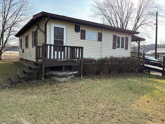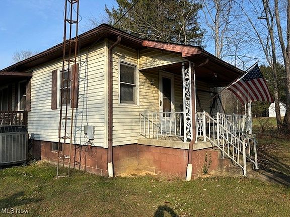 This 2-bedroom 1 bath ranch offers some very unique scenery from its front porch view, the Cambridge Municipal Airport and the Cambridge Colgate Palmolive manufacturing plant. The home has a story to go with the view, previous owner was a pilot and worked at that plant till he retired. The home décor is dated but the electric has been updated, the windows are all insulated glass, a newer bath and shower combination is in the bathroom. A newer heat pump efficiently heats and cools it. The eat in kitchen features sliding doors that open to the covered side deck. A dry basement is a feature you will always appreciate. A concrete paved drive leads to the 2-car garage. If you enjoy watching a view that is always changing this may be your perfect place. Owner will consider property or vehicle trade. Year built is unknown. Seller has never lived in property. Range, washer and dryer to go with the property. From the remaining contents seller to remove anything desired by him prior to closing with everything else to convey with sale.