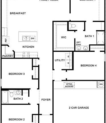 The Texas Cali plan is a single-story, 4-bedroom, 2-bathroom home featuring approximately 1,796 square feet of living space. The long foyer with an entry coat closet leads to the open-concept kitchen and breakfast area. The kitchen includes a breakfast island with beautiful granite countertops, stainless steel appliances, a corner pantry, and opens to the living room. Secondary bedrooms, baths, and utility rooms are all located off the foyer. Bedroom 1 features a sloped ceiling and an attractive bathroom with a spacious walk-in closet. The standard rear covered patio is located off the breakfast area. You’ll enjoy added security in your new D.R. Horton home with our Home is Connected features. With D.R. Horton's simple buying process and ten-year limited warranty, there's no reason to wait. (Prices, plans, dimensions, specifications, features, incentives, and availability are subject to change without notice obligation.)