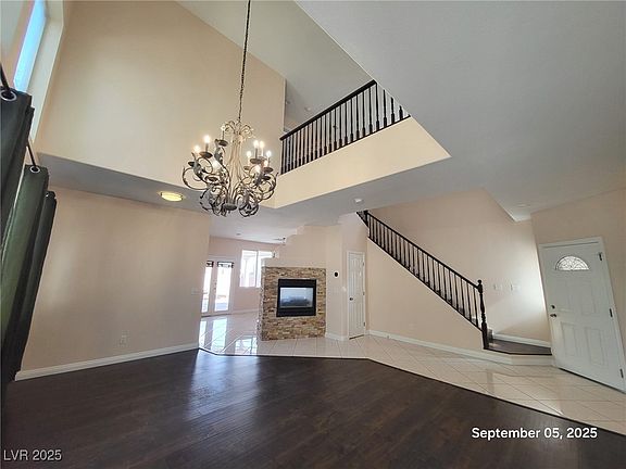 Spacious 4-Bedroom Home with Modern Upgrades and Open Floor Plan Welcome to this beautifully updated two-story home featuring soaring vaulted ceilings, elegant chandeliers, and an abundance of natural light. The open-concept floor plan seamlessly connects the living, dining, and kitchen areas, creating a perfect space for both relaxing and entertaining. Living Room: Bright and airy with large windows, vaulted ceilings, and a dual-sided fireplace that brings warmth and style to the living and dining areas. Kitchen: Upgraded cabinetry, granite countertops, stainless steel appliances, and plenty of counter space for meal prep and hosting. Bedrooms: Four spacious bedrooms including a private master suite with a large walk-in closet and an en-suite bathroom featuring dual sinks and modern finishes. Flooring: A mix of rich wood flooring and tile throughout, offering a perfect blend of elegance and easy maintenance.