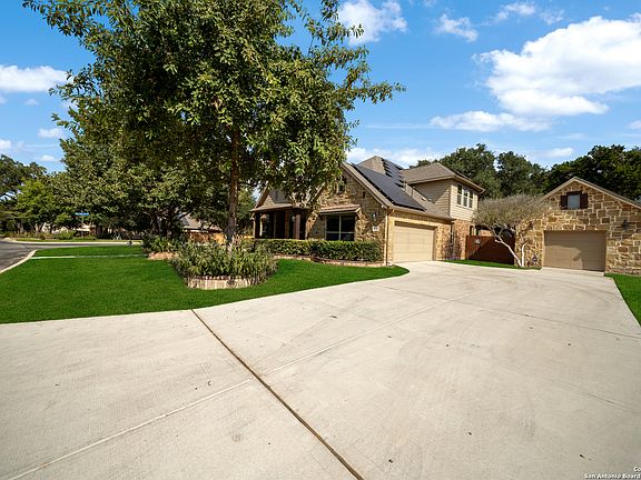 Welcome to Wind Gate Ranch, a beautiful gated community located on the northwest side of San Antonio! This beautifully maintained 1.5-story home offers the perfect blend of comfort, convenience, and thoughtful upgrades. Featuring 4 spacious bedrooms and 3 bathrooms all on the main floor with a gameroom/media room upstairs with a half bath, this residence is designed with modern living in mind. Step inside and you'll notice the elegant touches throughout-crown molding, high ceilings, and natural light enhanced by two sola tubes. The inviting floor plan features two living areas, a formal dining room, and a game/media room, providing ample space to gather and entertain. The office provides the perfect spot for working from home. Parking spots are abundant as well, with a 2-car garage plus a 3rd-car garage with upstairs storage. This offers plenty of room for hobbies and organization. The beautifully designed kitchen boasts a center island with a footrest bar, stainless steel appliances, gas cooking, custom pull-out cabinet drawers, stone around cooktop, travertine backsplash, built-in oven/microwave, reverse osmosis, and a walk-in pantry with charming string lights-perfect for the home chef. The cozy gas fireplace with faux logs creates a warm ambiance for family nights. Outdoor living shines here with a 6x20 raised garden bed, backyard deck, string lights, and a freshly stained/treated fence-all ready for entertaining. Additional exterior upgrades include solar panels, a 50 amp RV plug, generator hookups with an integrated system, and a 6x8 metal storage shed. Upgrades include solar panels, a mudroom, tray ceilings in dining room & master, crown molding throughout first floor, wood flooring, AC replacement, a replaced A/C evaporator coil, and a water softener which all add peace of mind. With its functional upgrades, thoughtful details, and prime San Antonio location, this home is more than move-in ready-it's built for the way you live today. Easy commute to highly sought-after schools, restaurants, and shopping.