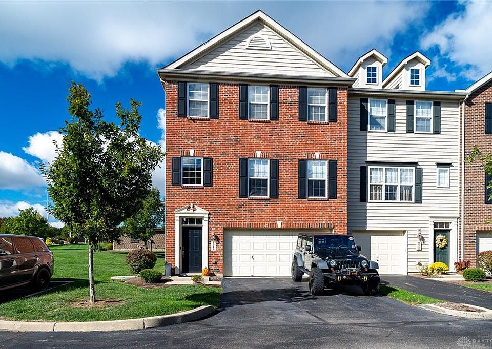 Highly coveted end unit located right next to the community pool and guest parking! This condo has all the luxuries you could want and is within minutes of Austin Landing, highways, Dayton Mall and shopping. Offering a spacious Living Room with recessed lighting, low maintenance flooring, custom-made bar with live edge wood that is perfect for those who love to entertain! Family room has gas fireplace with Shelving and paddle fan. Kitchen showcases tiled backsplash, granite countertops, recessed lights, appliance package and a breakfast nook that walks out to the adorable deck overlooking the common areas and pool! Three large bedrooms upstairs w/ primary bedroom offering vaulted ceiling, double vanity, garden tub, shower and huge walk-in closet. Laundry room is upstairs making laundry day a breeze! The icing on the cake is the recreational area downstairs including a full bath, exposed loft ceiling and patio access making this home the top of your list! 2 car garage, patio fence.