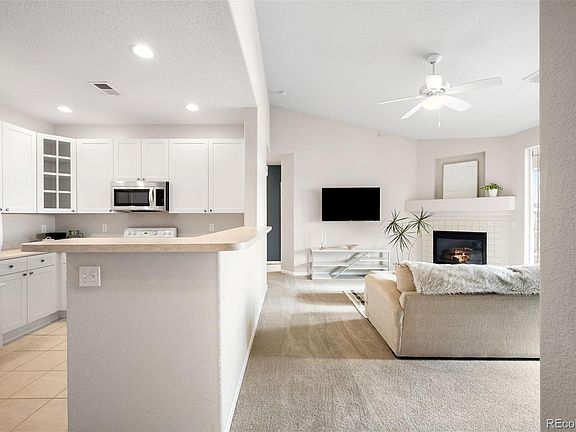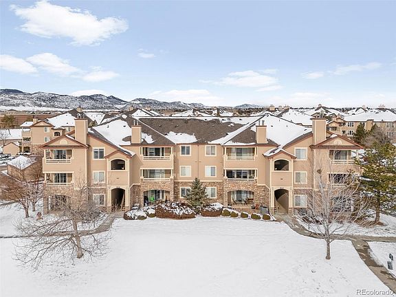 Welcome home to your bright and spacious top floor condo in the Redstone Ridge community! This immaculately maintained 1-bedroom, 1-bathroom home features a functional open floor plan. Floor-to-ceiling windows bathe the condo in sunlight and vaulted ceilings amplify the sense of openness. The well-appointed kitchen features an eat-in island and ample counter and cabinet space. Adjacent to the kitchen, the dining room provides a seamless flow for entertaining guests. The sophisticated living room features a cozy gas fireplace, bonus study nook, and a sliding glass door leading to the covered patio – an extension of your living space and the perfect place to enjoy your morning coffee and the sunrise with unobstructed views. The spacious bedroom boasts a vaulted ceiling and a convenient walk-in closet. The full bathroom is equipped with a soaking tub and large vanity for storage. The laundry room with extra shelving and cabinets completes the home. Redstone Ridge provides an unbeatable location near the Foothills and Chatfield Reservoir. The low HOA offers maintenance-free living with amenities such as an outdoor pool, clubhouse, and fitness center. Walk to nearby restaurants, shopping and more! Explore nearby hiking and biking trails, and savor the natural beauty of Colorado. Easy access to C470. Incredible opportunity to own in Littleton!