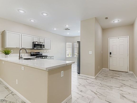 Location, convenience, and lifestyle come together in this 3-bedroom, 2.5-bath home within a private gated community in Southwest Las Vegas. Just minutes from the I-215, Durango Hotel & Resort, Harry Reid International Airport, and the Las Vegas Strip, this home puts you i the central hub of entertainment, dining, shopping, and more. Inside, a bright and open floor plan features versatile two-tone paint, luxury vinyl plank flooring, and marble quartz countertops that elevate the kitchen space. The flowing living and dining areas create a comfortable space for entertaining or relaxing. Upstairs features a primary suite with a walk-in closet and dual-sink vanity bath, as well as two well-appointed guest bedrooms and a full bath. For an outdoor retreat, unwind in the low-maintenance backyard, featuring desert landscaping and mature palm trees. This charming home is a must-see for anyone seeking a welcoming and comfortable place to call “home". Schedule your private showing today!