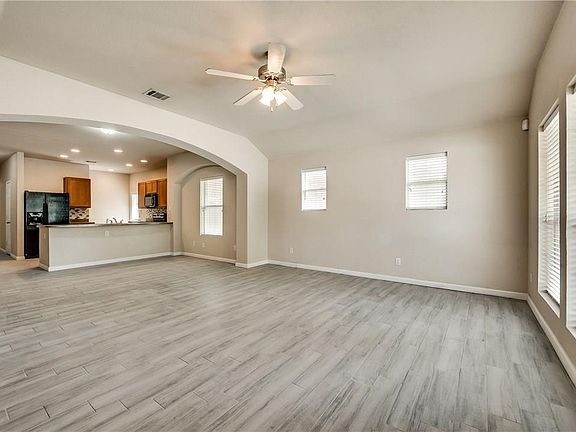 Ready for January 10 move in. Welcome Home to an inviting space that combines efficiency, comfort and style! Enjoy a thoughtful layout designed to give plenty of room for everyday living or entertaining. Enter into the home and you'll find the open concept living, dining, and kitchen that flow seamlessly together. The large open kitchen is sure to keep any chef happy, adorned with an abundance of cabinet and counter space, breakfast bar, all appliances including refrigerator. The dining room area is great for gathering around the table, while the breakfast bar gives an option for a more casual eating space. This large open area is perfect for creating a sense of inclusion between spaces. The bedrooms all sit toward the rear of the home. The primary bedroom offers an en suite bathroom with plenty of vanity space and a huge walk in closet. Secondary bedrooms share a full bathroom just down the hall. All bedrooms are sizeable, and all have generous closet space. Wood look tile flooring throughout the home gives a modern aesthetic and makes for easy clean up! Lots of windows give a naturally light and bright feel to the home. Relax on the covered front porch or in the private fenced in backyard space perfect for soaking up the sun, or gazing at the stars. Tandem style garage gives space to house 2 cars inside or 1 car and room for storage. Home is in a great location, with quick easy access to major thoroughfares, shopping, dining and green spaces. View today!