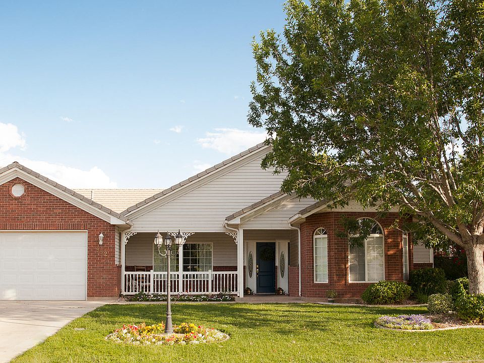 Charming 4-5 bedroom home across from golf course and within the boundaries of both Desert Hills schools and the affordable Dixie Power. Also in close proximity to park and tennis. Includes an office, formal living room AND family room! Features include a fenced back yard, covered patio, RV parking, hardwood floors, granite counter tops, crown molding, walk-in pantry, and plenty of storage. Also