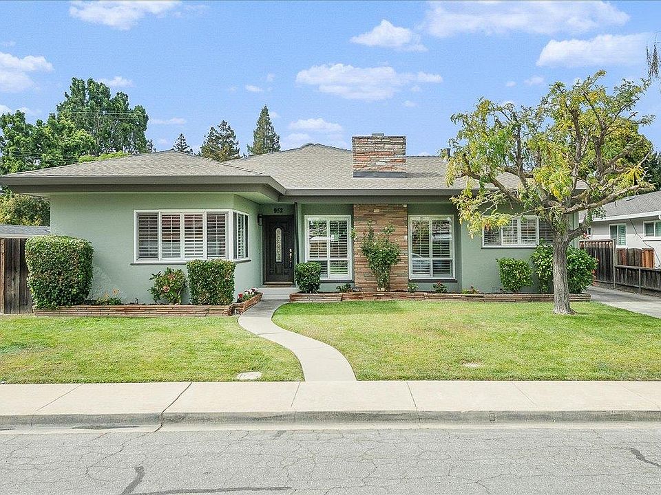 Beautifully refreshed single-story ranch in a quiet Santa Clara neighborhood, just minutes from major tech employers, Santana Row, and Central Park. Formal living room with gleaming hardwood floors and fireplace framed by floor-to-ceiling windows. Updated kitchen with granite counters, designer backsplash, stainless appliances, and custom cabinetry opens to a light-filled dining area. Expansive family room with dramatic rock fireplace and sun tunnels flows to a fully enclosed patio room featuring built-in grill, sink, cabinetry, and rolling European shutters overlooking the sparkling poolideal for year-round entertaining. Primary suite with built-ins, patio access, and spa-inspired bath with curb-less walk-in shower. Two additional bedrooms with hardwood flooring and excellent storage plus a vintage mid-century guest bath. Added versatility with 1BD/1BA ADU, utility/craft area with half bath, and detached 2-car garage with attic storage. Fresh paint, new carpet, lighting, and hardware.