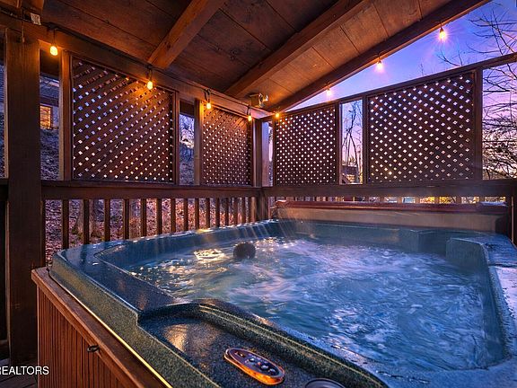 Wake up in the heart of Pigeon Forge, where the magic of the Smokies meets the excitement of world-class attractions. This stunning, impeccably maintained log cabin offers an experience guests never forget—just steps from Dollywood, The Old Mill, shopping, dining, and entertainment. Listen for the nostalgic Dollywood train whistle as it drifts through the air, a charming reminder that you're truly in the center of it all. Designed for comfort and connection, this turnkey cabin is fully furnished and rental-ready with a proven rental history. The inviting great room welcomes you with a gas fireplace and warm wood accents, while the thoughtfully planned layout offers privacy and flexibility for guests. A king-suite loft with full bath, a main-level queen bedroom with electric fireplace and full bath, and a lower-level king bedroom with electric fireplace and half bath ensure everyone has their own retreat. The game room, complete with pool table and media area, opens to the hot tub—perfect after a day of adventure. Outside, nearly a quarter-acre of outdoor living awaits, featuring a fire pit with bench seating, picnic table, and grill—ideal for evenings under the stars. City water and sewer add convenience, making ownership effortless. Whether you're searching for a high-performing short-term rental or a vacation home you'll never want to leave, this exceptional log cabin delivers location, atmosphere, and investment appeal in one unforgettable package.