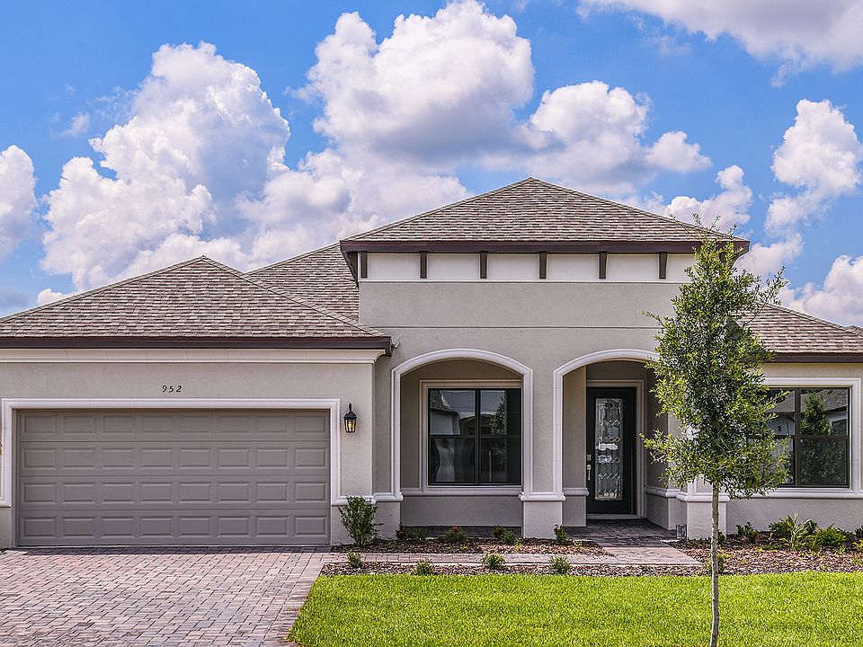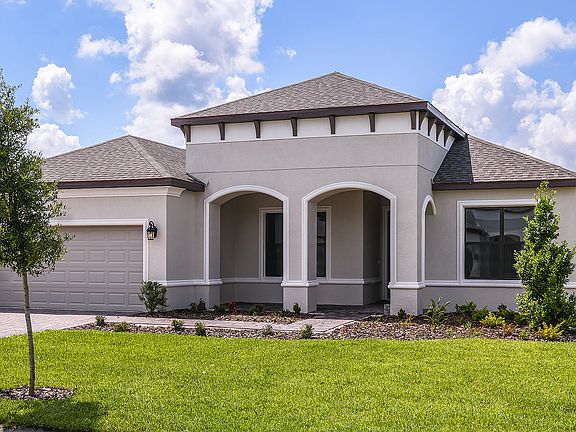 Under Construction. MLS# S5064550~ REPRESENTATIVE PHOTOS ADDED! Ready late March! Built specifically for age restricted 55+ communities. What distinctly sets the Ambra plan apart are the two owner's suites, each with spacious walk-in closets and bathrooms featuring dual sinks and walk-in showers. At the heart of this home is the wide open gathering room that flows into the gourmet kitchen and sliding doors leading to the sun soaked lanai. Complete with a formal dining room, guest bedroom and bath, oversized laundry room, and a 2-car garage. The incomparable Solivita community offers an exciting and unique lifestyle for its residents featuring exclusive amenities, events, and beautifully designed single-family homes. Structural options include: gourmet kitchen, bay window at second suite, extended patio screen, and tray ceiling package.