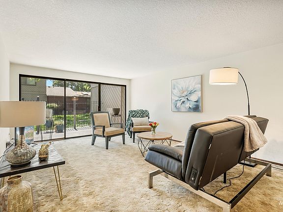 CHARMING TOWNHOUSE w/2-car garage attached! Prime Location and Secluded Park-like Community! Spacious 1-bedroom w/ 2 full bathrooms, separate living room, family room, dining room and kitchen. Front and back decks--fully fenced. New HVAC system 2024! A full wall of windows to enjoy the greenspace/deck view from living room, plus additional sliding glass door from bedroom to back deck for convenient extra living space. Front entrance includes a 220-amp outlet for your hot-tub. Peaceful, shady community walking paths, mature trees, and all exterior painting and landscaping maintenance provided by the HOA. Ample visitor parking, plus private 2-car garage and driveway space. Extra insulation and storage cabinets in the garage. Additional RV parking available for a fee. So close to everything near Cole & Emerald--shopping, restaurants, medical, easy I-84 access. Must see!