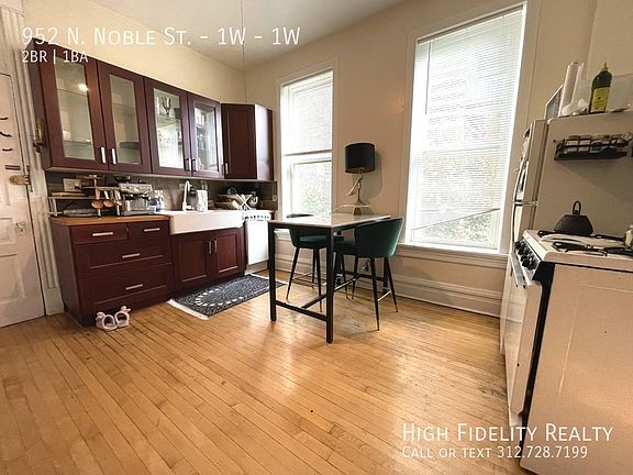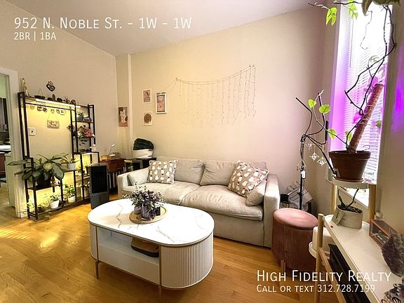 This adorable 2 bedroom, 1 bath apartment has a ton of charm. An updated kitchen offers a dishwasher and plenty of space for a bistro table. The apartment opens up from the foyer into a living room with high ceilings and huge windows for a that natural light energy. The primary bedroom easily fits a queen sized bed and a separate walk in closet, while the second bedroom is smaller- but still tons of storage. Outside entertaining is an absolute must with one of the prettiest yards in the neighborhood. Building is equipped with shared paid laundry and unit has forced gas. Dog (some breed, weight and ages restrictions) and cat allowed for additional fee. This perfect location between the charm of Noble Square and artsy bustle of Wicker Park is a great place to call home. Near Jewel-Osco, Garden Gourmet, and an Urban Target- food and necessities are abound. Boutiques, music venues, and theatres line Milwaukee Ave. add to the appeal. The Chicago Blue Line, Ashland Avenue bus, and 606 (for you bikers and walkers!) are all within blocks.