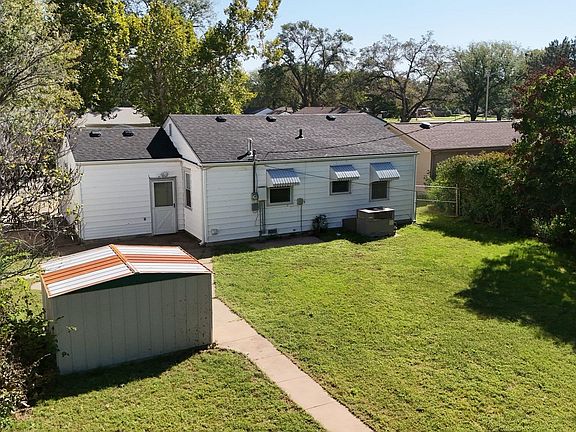 NEW roof & NEW gutters in September 2025. You don't want to miss this move-in ready, two-bedroom, one bath home with lots of new! This neat and tidy home features freshly painted interior and all new carpet and vinyl. Home has stainless steel farm sink, electric range/oven, refrigerator and dishwasher. The single attached garage is over sized, has extra storage above and has a workshop area and window A/C. You will appreciate the low maintenance vinyl siding and newly painted trim and awnings. There is a large, fenced-in backyard with a utility building, and the driveway has an extra parking pad. Seller will give buyer a credit of $1,750.00 at closing for radon mitigation.