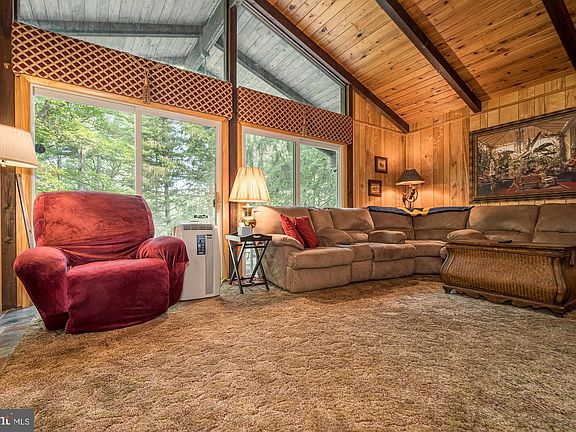 Classic Deep Creek 3BR 2BA lakefront chalet with Type A private dock! Incredible 100ft lot in a peaceful cove with deep water. The perfect mix of towering mature trees and open, grassy lawn to the waters edge. Exposed beams and a native stone fireplace are among the highlights of this waterfront property, along with a spacious deck. Includes plenty of parking, a huge detached 2 car garage and an oversized shed. The attached garage space could be converted to additional living area. Home is in a trust and is being sold in AS-IS condition. Walking distance to the Thousand Acres golf course!